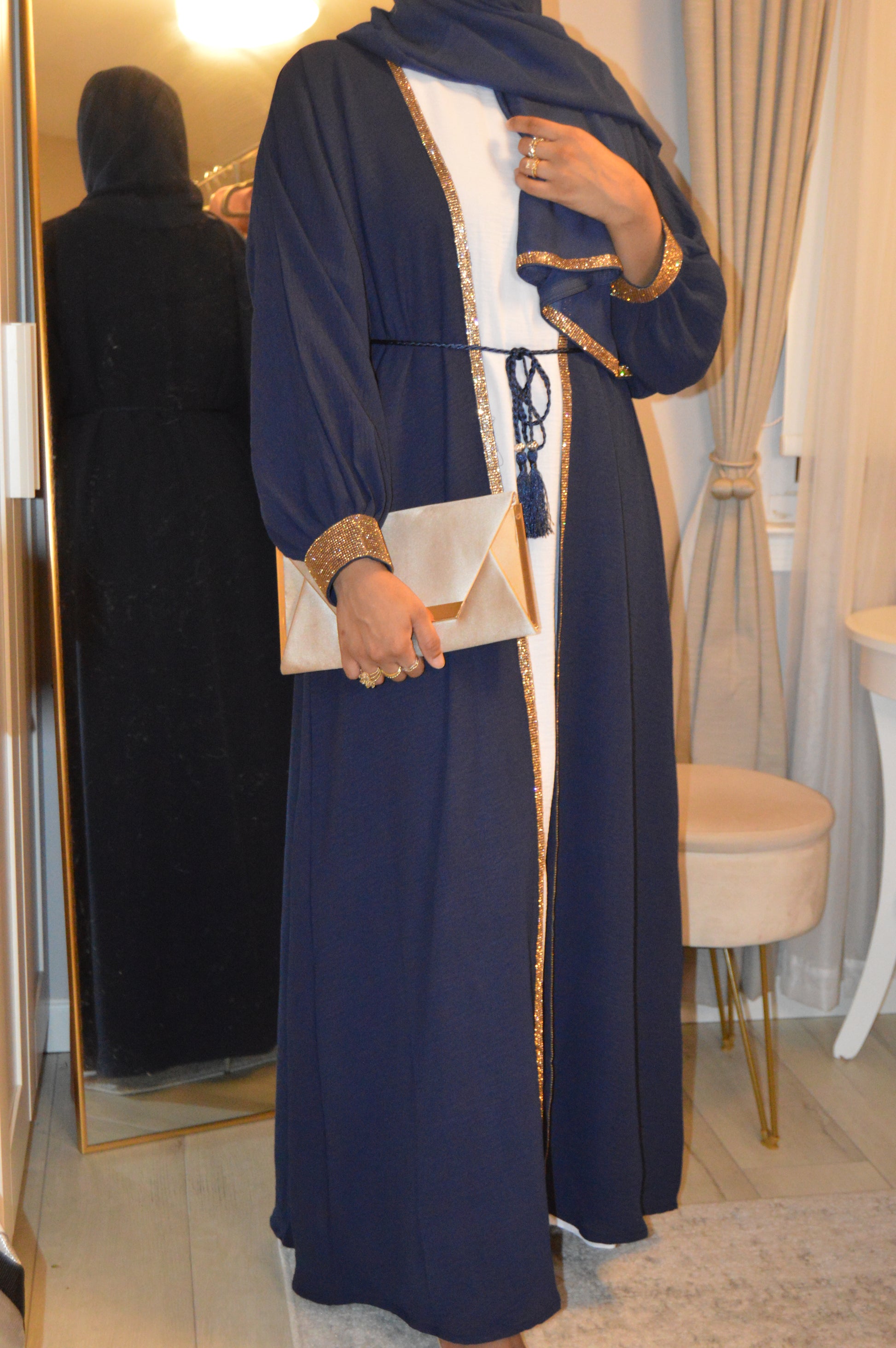 Elevate your modest wardrobe with this elegant 4-piece abaya set, crafted from premium CY fabric for a soft, lightweight, and breathable feel. This set includes a matching inner dress, open abaya, belt, and hijab—offering both comfort and versatility. The look is completed with delicately embellished cuffs that add a subtle touch of glamour, perfect for both everyday elegance and special occasions.